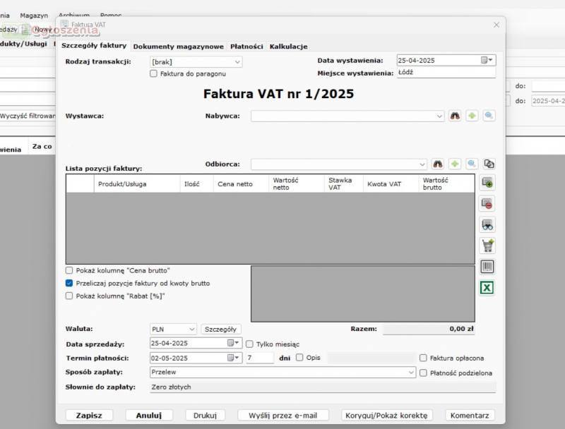 Obliczenia na fakturach możliwe od netto i brutto